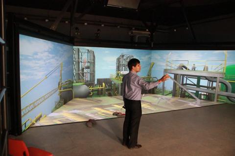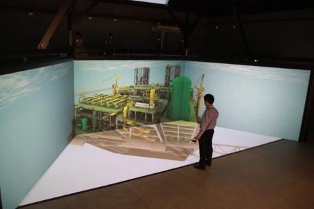 As Tecgraf’s main focus is on computer graphics, easy and clear data visualization is key for the researchers to gain thorough insights into their projects and collaborate efficiently. Barco’s three-sided (+ floor) iSpace featuring three Galaxy NH-12 projectors and one ultra-high resolution LX-5 projector proved to provide the perfect simulation solution.