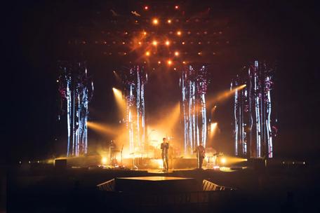 “Imagine Dragons began with a provocative ‘smoke and mirrors’ concept based on the notion that things aren’t always what they appear to be,” comments Creative Director Jesse Lee Stout of Moment Factory, who managed the content, lighting, automation and stage design of the show. “The Barco XHD media server performed perfectly, seamlessly managing the visual content on the main stage columns to create a dynamic focal point and complement the undulating, high energy of the performances.”