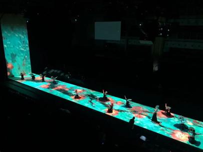 Turning this script into a credible show required a lot of work. All possible canvasses were used, including the vast floor space, the ceiling, ramps and a giant shower of water on which images were projected. The show was also controlled with Barco’s Event Master image processing solutions E2 processor and EC-210 desktop controller. E2 is the first screen management system to manage 4K projector blends. Supporting native 4K input and output, E2 makes managing these multiple canvasses very easy.