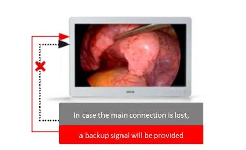 Some surgical monitors come with an automated failover feature to ensure a backup signal at all times. This means that, in case of a technical failure, surgeons and operating room staff will continue to see all critical information needed during a surgical procedure.