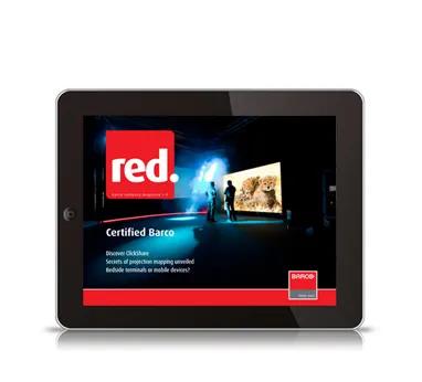 Barco's company magazine red. is now a 100% digital issue. This offers a total multimedia experience, allowing you to watch videos, explore websites and browse through photos all with a click of a button. Do this via your computer or on your iPad, using the highly attractive app.