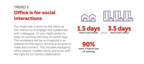 Discover the 5 tech trends you bring from the home office into the hybrid workplace and into hybrid meeting.