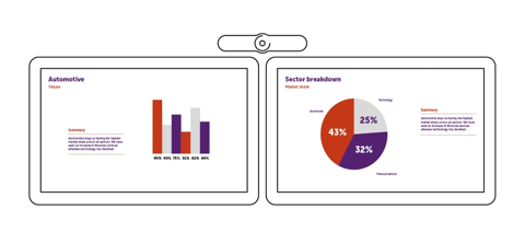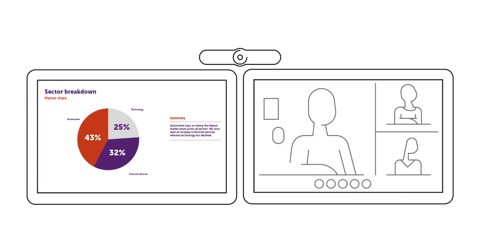 With dual screen support, users can optimally benefit from high-end AV setups and large displays in board meetings. Thanks to an unrivalled simplicity and zero learning curve, both employees and guests have no issues to start a video meeting within seconds.