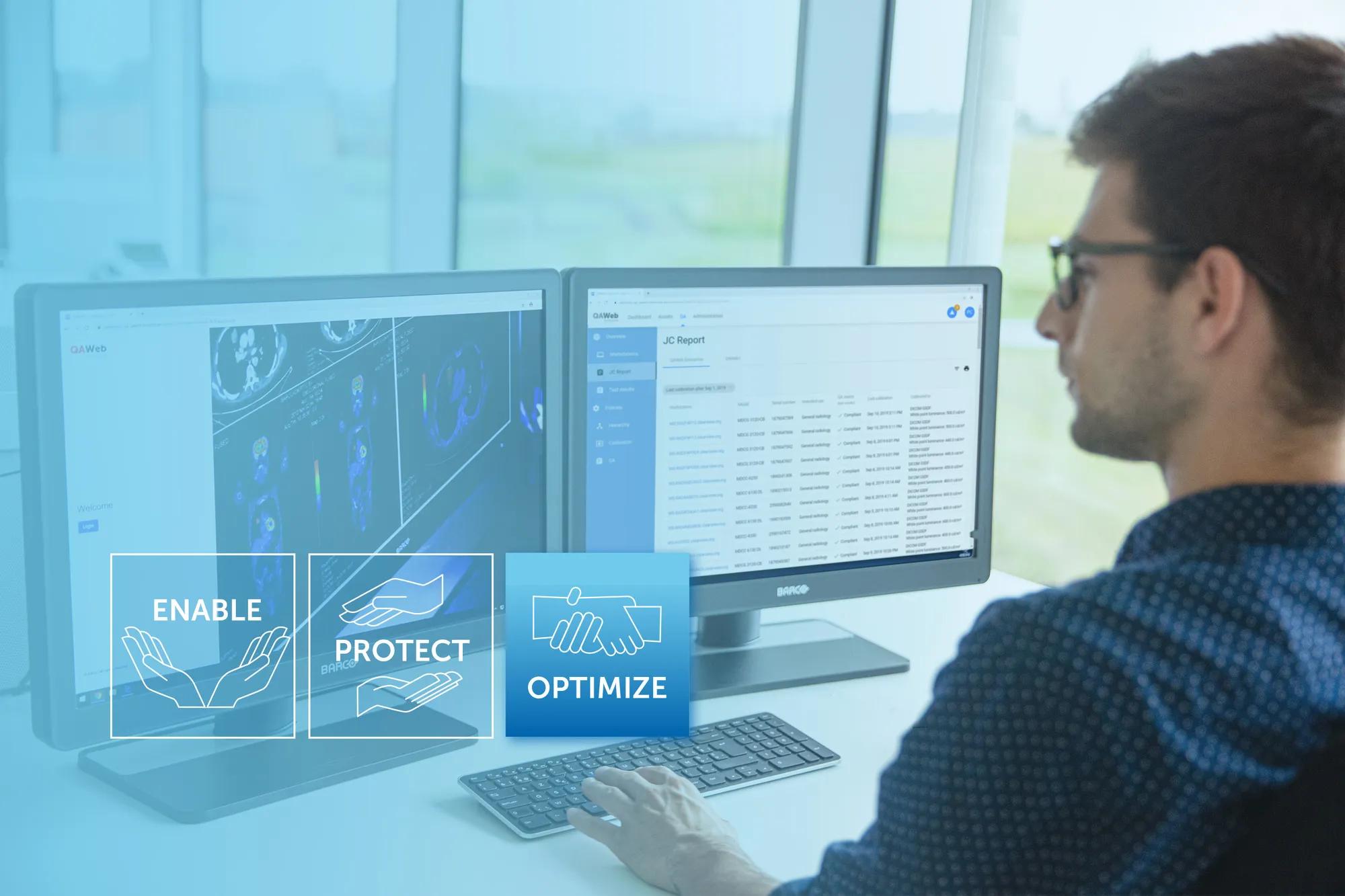In a world of ever-changing regulations and budget controls, searching how to get the most out of your investment can take up a lot of time and energy. Our Optimize Services are fleet management contracts, that secure your Barco diagnostic displays by focusing on three pillars: compliance management, asset management and total cost of ownership. These services are a Barco quality label for installed base management that maximizes the value of your investment.