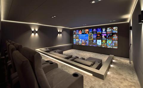 This cinema features a very nice design, all done by Dutch AV integrator, De Opera Domotica. They have been doing this for over 20 years and are known for design, quality, comfort, ease of use, safety and security.
