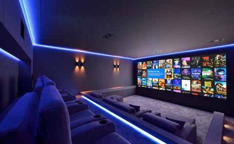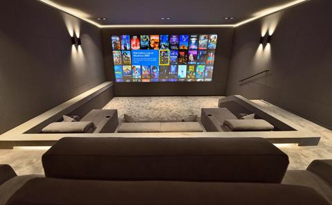The cinema is equipped with a fantastic sounding Wisdom Audio system and our Njord projector. Thanks to its 12500 lumens with 100% DCI/P3 coverage it delivers stunning images on the 4.85m wide scope screen easily delivering at 55fL for HDR and 25 fL for SDR content.