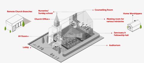 Technology enables the hybrid church offering a space for worshippers in person and digital.