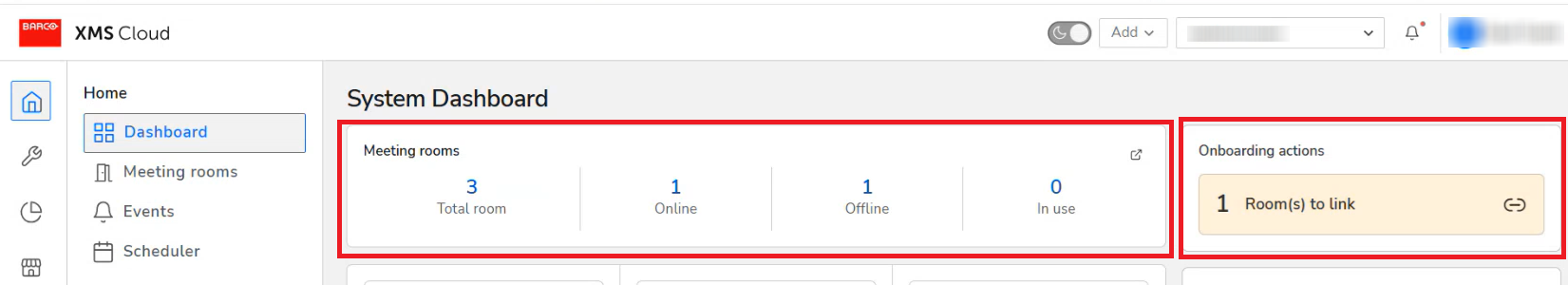The system dashboard in XMS Cloud v2.25.0 has been enhanced to support the new Meeting Room Management feature. Key updates include: