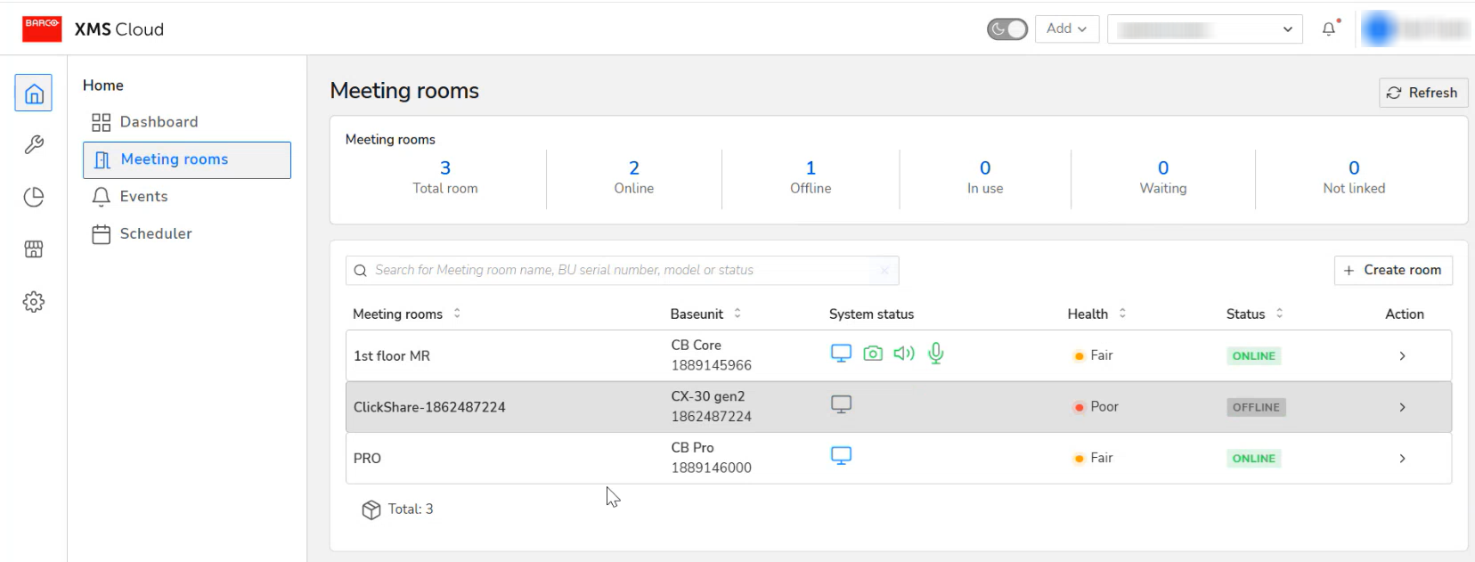 - Virtual meeting room(s) created: Indicates rooms have been created but no ClickShare device has been assigned yet
