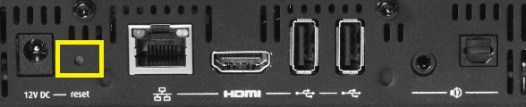 The reset button can be located at the back of the ClickShare device (marked in yellow color in the respective images below).