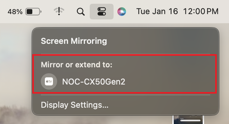 To stop sharing your macOS device, click the Base Unit in the screen mirroring menu.