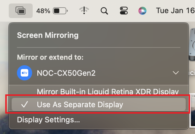If you want to cast a virtual secondary (extended) desktop on macOS, select Use As Separate Display.