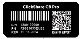 - Back or bottom: Check the label attached to the back or bottom of the ClickShare product.