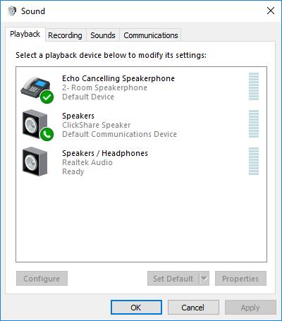 Testing ClickShare Conference peripheral functionality in Windows can be done without using specific conferencing software (UC&C tool such as MS Teams, Zoom, Webex...) since ClickShare Conference makes your peripheral device available in Windows.