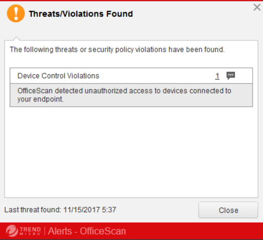 Trend Micro has flagged the ClickShare Button as a potential security threat or policy violation. The following message may appear: