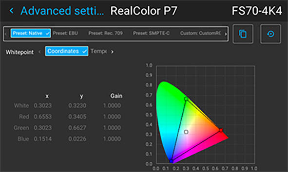 Go to Native RealColor within the Maintenance section to input the resulting white x and y coordinates. Click Apply when done.