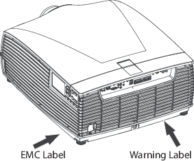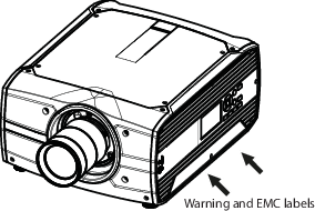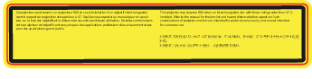 For F90 series: (Warning label) Caution! With Interchangeable lens with throw ratio greater then 3.15, consider hazard distance and installation requirements for RG3 product. Refer to user manual. |