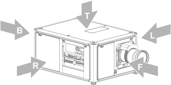 当观众站在投影机后面并观看投影机前面的投影屏幕时,本手册将投影机的左侧作为左手侧。