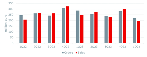 • Orders for 1Q24 of 220.1 million euro, 23% lower vs 1Q23