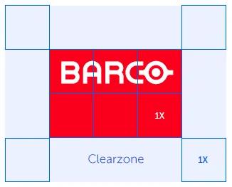 The amount of clear space around our logo should be equal to or greater than the height of half of the rectangle in the Barco logo.