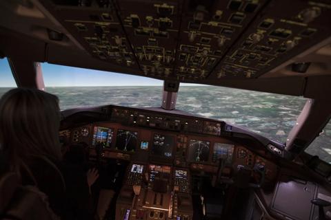 The Boeing 777 flight simulator is fitted with a 200 x 45 degrees collimated display. The RSI XT4 image generator, which is capable of delivering 4 Million pixels per channel, coupled with the 2560x1600 pixels DLP LED projectors, allow for an increase of the vertical field of view to 45 degrees, which gives distinct benefits of pilot training particularly on circling approaches, as the extra 5 degrees field of view is at the lower portion of the screen.