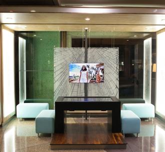 Working closely with production and event management company Velocity Productions, Barco outfitted the newly redesigned atrium and gathering spots with its near-seamless LCD video walls to present spiritual imagery and videos, live media streaming, and signage for upcoming events and services. A total of 22 OverView NSL-4621 LCD tiles were configured into numerous video walls featuring several different palettes of content. A stunning four-by-two tiled video wall comprised of eight 46-inch Barco LCDs is the primary focal point of the Atrium’s new interior. Along 61st Street, six pairs of monitors show the same content outside as inside to attract passersby.