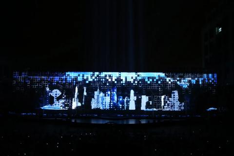 The 55-meter-wide and 14-meter-high building served as the screen of the show. In addition to presenting the creative content flawlessly, a number of technical challenges needed to be surmounted, including: geometric correction, merging & stitching, multi-layer overlaps, and more. In addition, the light show was not to cover the 770 m² projection surface entirely, as it also illuminated the live show.
