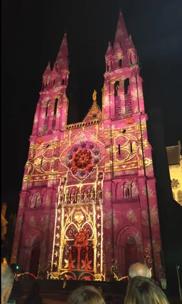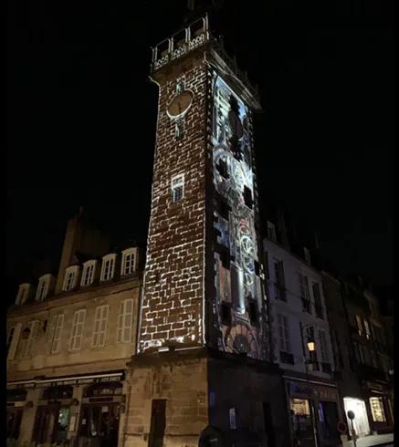 The historic French town of Moulins, in the Auvergne region, competes with other picturesque towns for visitor traffic. Like many others, it has an impressive range of mediaeval buildings. The town elders decided to showcase the most impressive ones using lights and projections as part of Moulins entre en scène.