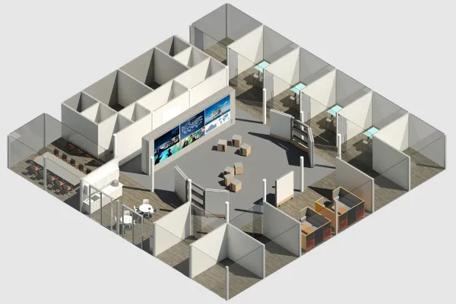 Despite challenging building restrictions, an existing space was transformed by CCOMM to create a calming sanctuary, designed to encourage productive interaction between peers within intimate huddle areas. An open area at the front of the building was re-configured by Barco and Urben to facilitate the installation of a giant, multi-tiled, HD video wall and supporting audio-visual equipment.