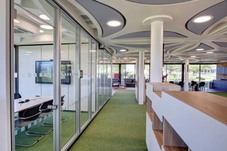 The customer wanted the space to provide intimate meeting areas where colleagues could break away to run brainstorming sessions and collaborate on team projects, while delivering a larger seated area where audiences could interact with visual content and on-screen presentations.