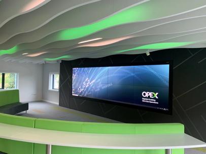 Barco’s flagship UniSee LCD video wall was installed at the heart of OPEX’s new office by AV One, who fitted all of the technology solutions in the building. The Barco UniSee video wall, which is touchscreen enabled, is now used as the focal point for everything from executive customer presentation and collaborative workshops to training programmes and internal communications – always with a focus on visualization.