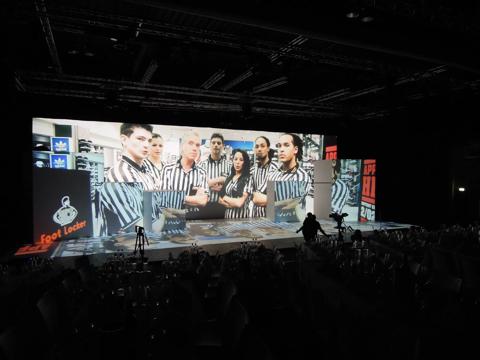 Barco’s event projectors can be used in all kinds of shows and set-ups. During the annual award ceremony for the Foot Locker Europe Management team, four RLM-W8 projectors were used for floor projection - a unique set-up by Barco rental partner ACS audiovisual solutions. The RLM-W8 projectors worked alongside two ultra-bright HDF-W26 and three more RLM projectors to create an amazing show at the Nieuwegein Business Center (the Netherlands), on 28 February last.