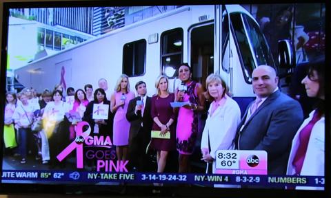Joining with Hologic to promote Breast Cancer Awareness month in New York City last week, Barco supplied its Nio 3MP display system for use in a live television broadcast of a 3D screening mammogram on ABC’s top-rated morning news program “Good Morning America.” One of the show’s anchors volunteered for the exam, conducted on a motor coach adjacent to the Times Square studio and provided by Nassau University Medical Center.