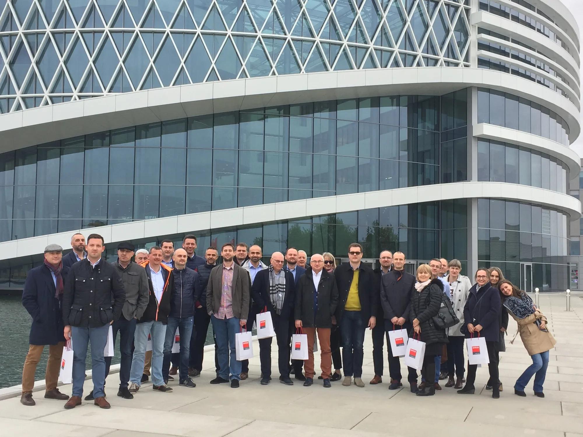 The first stop was Duffel, home of Reynaers Aluminium, a leading European provider of architectural aluminum solutions. Reynaers heavily invests in R&D and innovative concepts to ensure the best quality solutions and help architects blur the lines of traditional architecture. The visiting team was treated to a first: a tour of Reynaers’ brand-new, top-notch Experience Center. Featuring a 3D Barco cave for testing and prototyping, the Center is to officially open later this year.