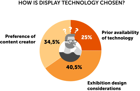 Visual display technology is chosen based on how the technology fits into the exhibition design, with 40.4% of respondents highlighting this as a key factor. The chosen technology must complement the spatial, aesthetic and functional aspects of the exhibit, ultimately ensuring a cohesive and engaging visitor experience.