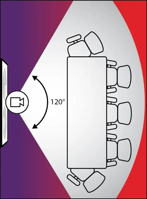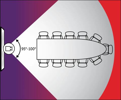 对于大多数视频会议一体机来说,视场角范围在 95° 至 120° 之间,您所需要的视场角取决于会议室的大小。