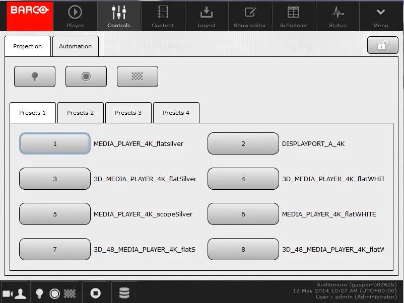 所有巴可灵睿系列放映机均配备“Barco Commander”软件,该软件通过触摸屏控制器或 PC 运行。
