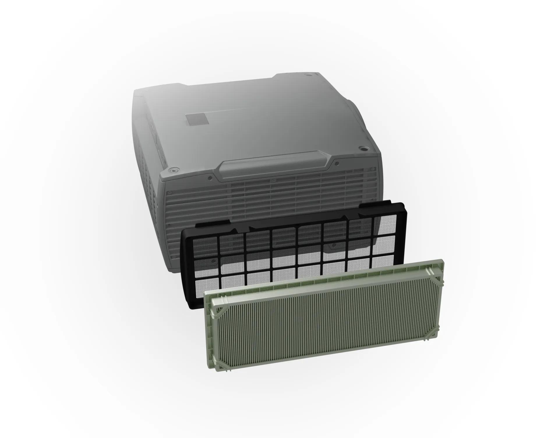 巴可烟雾过滤器是 FL40 / FS40 系列投影机的选装件,它有助于消除进入投影机的空气中的污染物(如污染物),并有助于优化投影机的冷却效果,从而延长了产品的使用寿命。该款投影机易于安装在产品侧面,可自动检测到您要安装的过滤器,使其在安装后即可使用。