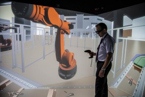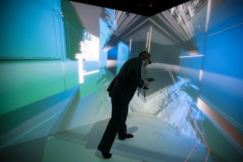 A cave display is a multi-sided immersive environment that offers great levels of immersion.与头戴式显示器 (HMD) 相比,多面立方体显示系统可促进协作。因为多人在相同的地点看到相同的 3D 影像(而非个人虚拟环境),沟通和协作变得很容易。