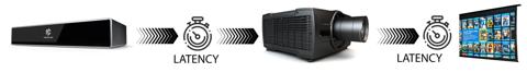 Latency is the delay between a frame change on the source side until the same frame shows on the screen side, often referred to in computer terms as the total round trip time it takes for a data packet to travel. Latency is generally measured in milliseconds (ms) and is unavoidable due to the infrastructure and the processing time on the source side and the processing time on the image side. Latency depends on several aspects of all the devices in your setup and can vary if any of them are changed or a device is added/removed.