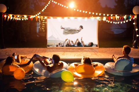 After the sun sets, your backyard is transformed into a beautiful movie theater offering a few hours of entertainment and cool respite from the summer heat – all in the privacy of your own backyard with famliy and friends.