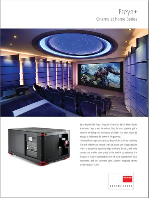 Freya+ is exclusively created for high-end home theaters, with more contrast and a wider color gamut, at the level of our reference Thor projector. It features the latest in native 4K DLP® chipsets from Texas Instruments and the acclaimed Barco Alchemy ICMP (Integrated Cinema Media Processor).