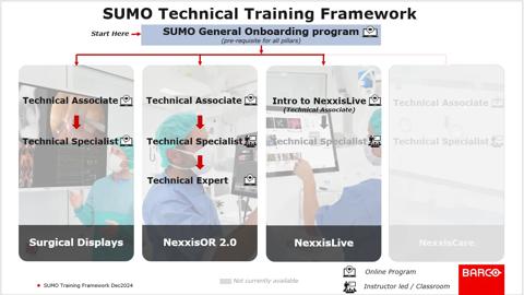 Barco’s Surgical and Modality Technical training has been divided into a number of product pillars. Within each pillar, the training has been further split into certification levels, to enable you to obtain training and certification at the level according to your needs and requirements.